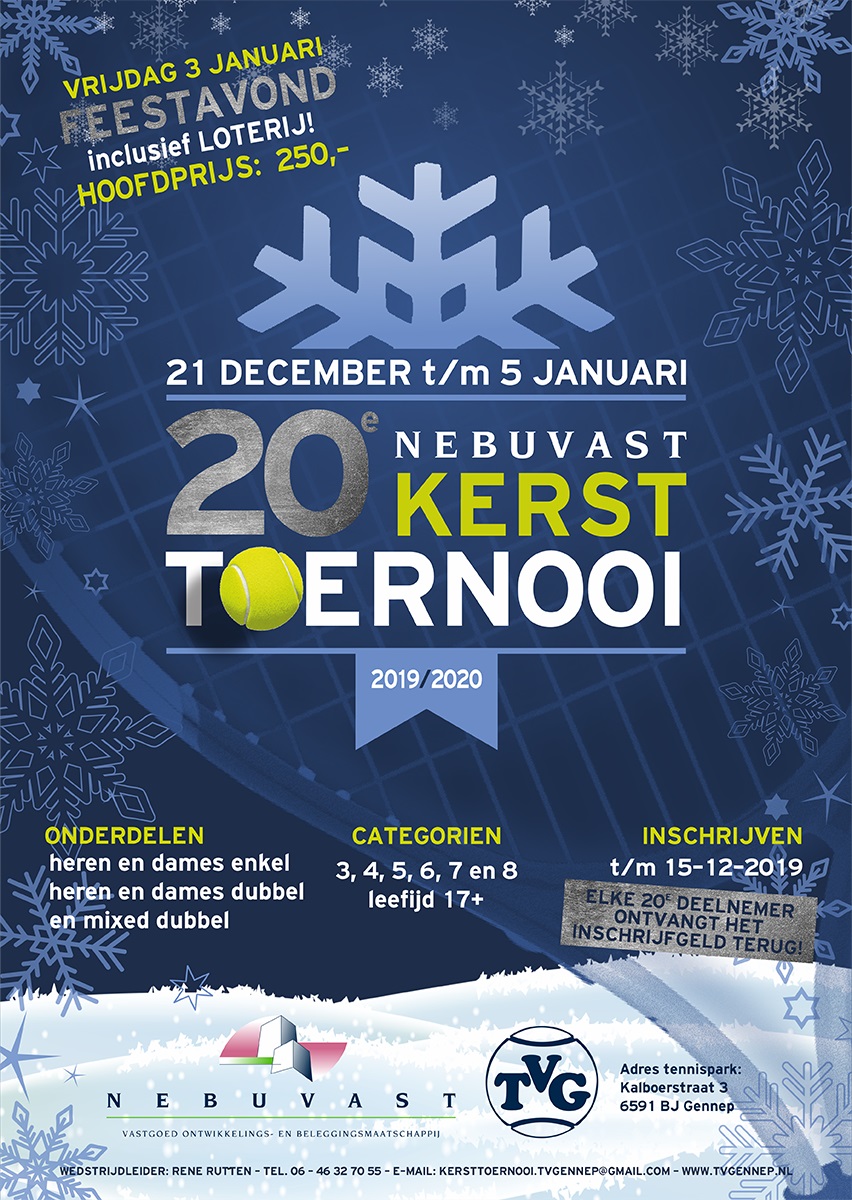 Op zaterdag 21 december start ons Nebuvast Kersttoernooi. Iedereen is natuurlijk van harte welkom om te komen kijken. Op vrijdag 3 januari staat onze legendarische Feestavond gepland, ook daar bent u van harte welkom.