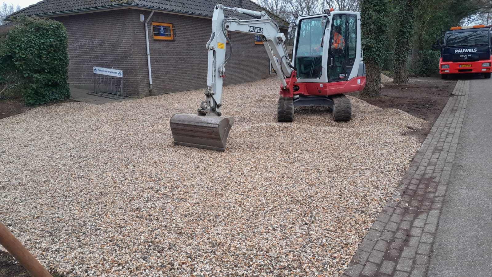 Op de foto zie je dat AVG grind heeft gestort op de parkeerplaats, dat gaan we wat verder verspreiden, maar er is ook lichter werk te doen.